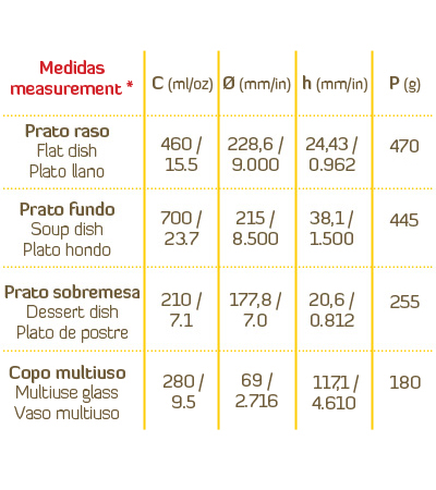Capacity mensurements were calculed up to the brim of the product. The dimensions